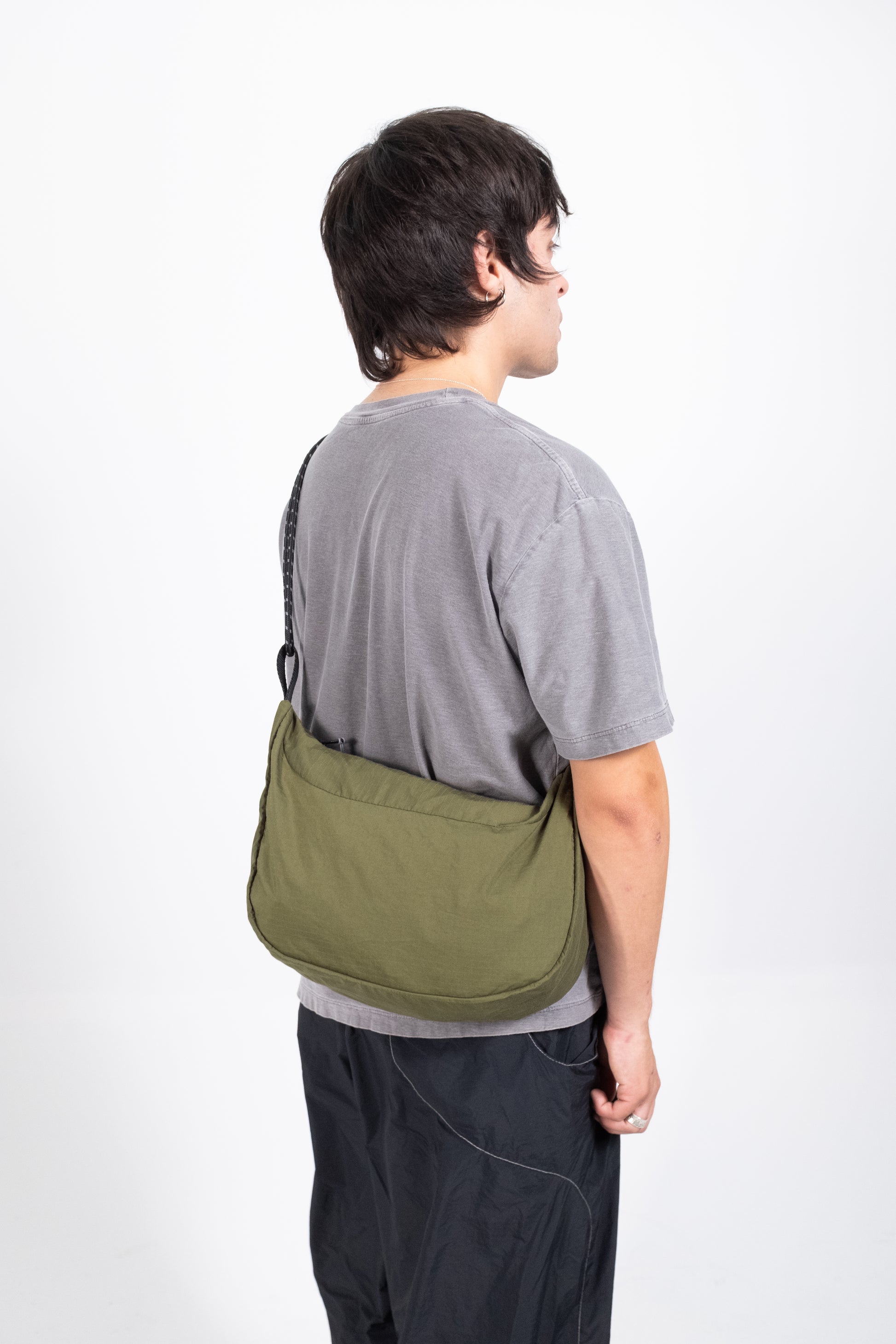 Ultralight Nylon Ripstop sling bag. Made from 1.9oz ripstop nylon. Army Green colour. Adjustable rope strap.